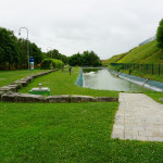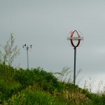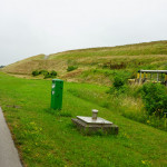 Wir setzen uns in die „Bäderbahn“ und zuckeln los. Der Regen hat sich gelegt, der Wind wehrt sich noch kräftig. Irgendwann fahren wir nur noch an Grassterassen entlang. Zwei Meter Erde ist auf die Schlacke aufgeschüttet, darüber läuft die Renaturierung. Über unseren Köpfen rütteln Greifvögel. Wir halten an einem Maschinenstand, weiter geht es mit den technischen Erklärungen. Die Deponie erzeugt Energie, ein wenig über Solarzellen, hauptsächlich über die Gase, die immer noch im Hausmüll der 60er bis 80er Jahre entstehen, welcher unter den Schlacken liegt. 150 Gasbrunnen greifen sie ab und leiten das Gas in große Gasmotoren, die es in elektrischen Strom und Fernwärme umwandeln, letztere direkt für das zentrale große Tierheim Wiens gleich in der Nachbarschaft. Mancher wird nach dem Grundwasser fragen. Hier präsentiert uns unser Führer stolz das sogenannte Wiener Zweikammersystem. Ring um die Deponie ragen zwei Mauerringe bis zu 50 Meter tief in den Untergrund. Das Wasser unter der Müllkippe ist abgesenkt unter das Niveau der Umgebung, das Niveau einer Zwischenkammer liegt dazwischen. Aller drei Stände werden ständig überwacht, durch die hydraulische Kaskade kann kein Grundwasser aus dem Gelände in die Umgebung fließen, die i.Ü. mittlerweile unter Naturschutz steht.