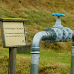 Ein Blumenmeer umgibt uns, ein Naturfotograf könnte Stunden hier verbringen, um Blüten, Schmetterlinge u.a. Insekten zu fotografieren. Ein Teil des Geländes greift die zukünftige Nutzung der Deponie voraus, schon jetzt ist hier ein Begegnungsstätte für Schulklassen entstanden, Tischen und Grillgeräte stehen umher. Ein Teich lädt fast zum Baden ein, aber noch dient er nur dem Sammeln der Oberflächenwässer und dem Wässern der Flächen. Ein Hühnerhof existiert und wenige Meter bergan treffen wir auf die besonderen Bewohner der Deponie, die Pinzgauer Ziegen. Drei Exemplare, ein Bock und zwei Zicken, dösen in einem Gehege, die andere 20köpfige Herde ist gerade im Deponiegelände unterwegs, sie können frei umherlaufen. Als Feinschmecker, wie uns unser Führer versichert, fressen sie nur ausgewählte Pflanzen.