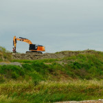 Am Anfang, wie üblich die Historie. Die Deponie gibt es seit Beginn der 60er Jahre des letztem Jahrhunderts, zunächst als Hausmülldeponie in einer ehemaligen Schottergrube angelegt. Erst ab Ende der 80er Jahre werden hier ausschließlich die Verbrennungsrückstände gelagert. Damals ist die Idee mit dem Schlackenbeton entstanden, der zwei Vorteile hat: zum eine umschließt er ggf. noch Restbestände von kritischen Stoffen wie z.B. Schwermetallen sicher und unverrottbar, zum anderen kann er wie Baumaterial verwendet werden. Halbzäh angeliefert, härtet er über 14 Tage aus. In dieser Zeit kann er aufgestapelt werden. Unser Führer spricht deswegen fast zärtlich von einem Gebäude, dass hier errichtet wird, ein Ausbildungsberuf auf der Deponie ist auch der Bauarbeiter. Die Flanken der Deponie sind stufenförmig und steil. Sie wächst nicht in die Breite sondern auf einer Fläche von 53 Hektar allein in die Höhe. 33m ist sie mittlerweile hoch, 75m sollen es werden. 60 Jahre soll dies noch dauern, solange können alle Reste des Mülls der Wiener Haushalte weiterhin hier endgelagert werden. „Das ist lange nach meiner Zeit“, sagt unser Begleiter. Nur Bauabfälle werden auf einer gesonderten, durch die Bauwirtschaft selbst betriebenen Deponie entsorgt.