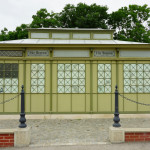 Zur Historie passt das „Hobby“ der Leiters der 48er, er sammelt auf seinem Gelände, Reste der Stadtausstattung – alte Straßenbahnen, einen ganzen Laternenzug einer Straße, eine Gondel des Riesenrads am Prater, ein altes Pissoir und ein bis 2013 betriebenes, innen und außen original restauriertes Toilettenhäuschens der Jugendstilzeit. Auf dessen Schild lese ich, dass früher die Wiener sowohl erste Klasse (mit eigenem Waschbecken in der Kabine) wie zweite Klasse (mit Gemeinschaftswaschbecken) kacken konnten, das Pissoir war wenigstens kostenlos.