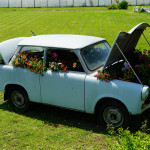 Die Felder werden von großen Gewächshäusern begrenzt, in denen wächst, was auf den Märkten und Bioläden als regionale Produkte vermarktet wird. Ein Gemüsebauer versucht mit einem blumenbepflanzten Trabi vergeblich einen Witz zu machen. Misstrauische Augen folgen mir. Eine Frau mit Hund fragt, was ich denn hier fotografiere. Als ich ihr antwortete, wohin ich des Weges bin, ist sie zufrieden und weist mir eine Abkürzung. Über Trampelpfade erreiche ich den Alberner Hafen. Links von ihm liegt ein heruntergekommener Imbiss mit den hochtrabenden Namen „Hafenkneipe“, der die Fernfahrer mit billigen Essen versorgt. Als ich ihn betrete, begrüßt mich die Servierkraft mit „Da kommt ja noch so ein Schöner“. Draußen kreisen am Mittag die Wodkagläser, zwei dicke Frauen torkeln zu ihrem Auto und brausen davon.