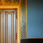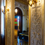Wir durchschreiten weitläufige Esszimmer, Rauchersalons zum Verweilen nach den Diners danach für die Herren, Kaffeezimmer analog für die Damen, alles durch große Schiebetüren erweiterbar. Im Erdgeschoss waren die Räume seiner Bank, noch heute funktionieren die metallenen Schutzschilder vor den Fenstern und werden gern bei der Führung vorgeführt.