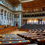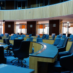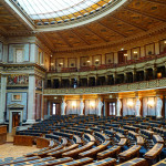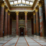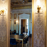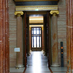 Nach der beeindruckenden Säulenhalle und ein Schwenk durch das ursprüngliche Foyer versammeln wir uns im offiziellen Raum zum Innehalten, einen Raum, der ausdrücklich für Abgeordnete bestimmt ist, damit sie dort in Ruhe noch einmal die Entscheidungen persönlich überdenken können.