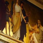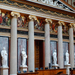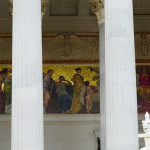 Wer man einen Besuch des Parlamentes plant, sollte einen Besuch des heute zum Parlamentes Palais Epstein einplanen. Zum einen ist es repräsentativ für die Prachtbauten des Bürgertums Ende des 19. Jahrhunderts, zum anderen hat es seine besondere Geschichte. Der Bauherr, Gustav Epstein, aus einer Prager jüdischen Familie stammend, war durch Baumwolldruck und Textilgroßhandel reich geworden, verkaufte dies jedoch und gründete eine eigene Bank. Im Krieg 1866 stützte er das Kaiserhaus politisch und finanziell, u.a. ein Grafentitel war der Lohn. Er spielte eine erste Rolle in der Wiener Stadtgesellschaft – Verwaltungsdirektor der Nationalbank, Vorstand der „Westbahn“ und mehrerer Baugesellschaften, Vorsitzender der israelitischen Kultusgemeinde. Unmittelbar neben dem Parlament als Einzellage an der Ringstraße gelegen, war das Baugrundstück beim Erwerb das teuerste von ganz Wien. Der Baumeister war derselbe wie der des Parlamentes, Theophil Hansen, die Formensprache die nämliche. Geht man durch den Hof und die Räume, bekommt man einen guten Eindruck von der Weitläufigkeit und konsequent durchgehaltenen Stil eines derart extravaganten Baues der damaligen Bourgeoisie.
