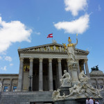 Doch auch die anderen Sitzungssäle werden normal bei der Führung besucht. Für den deutschen Bundestag wohl eher unvorstellbar, wird man hier aufgefordert auf den Sitzen der Abgeordneten oder sogar auf der Regierungsbank Platz zu nehmen, um den Führer zu lauschen. Die Selfies auf dem Bundeskanzlersitz sind einkalkuliert. Auch, dass die Schubladen der Tische aufgeschoben werden und die Vorräte an Kaugummi, Stiften und Notizzetteln geprüft werden. Nein, das nimmt nichts von den Oben und Unten auch in einer parlamentarischen Demokratie und den speziellen österreichischen Gegebenheiten, wo eine rechtpopulistische FPÖ schon an Regierungen beteiligt waren und sich Bundeskanzler hörige Presse kaufen konnte. Doch die eine Anmutung, dass das Haus nicht nur Erhabenheit und Abstand vermitteln soll, sondern auch eine gewisse Bürgernähe, die aber nie hemdsärmelig wird, ist zu spüren. Im Zentrum der Macht herrscht das typisch wienerische, ironische Understatement. Als ich das Gebäude verlasse, sehe ich, wie 300.000 Menschen bei der Pride-Parade fröhlich auf dem Ring am Parlament vorbei demonstrieren.
