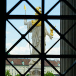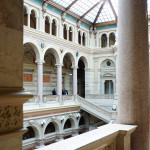 Wer nach diesen Runden sich erfrischen muss, kann dies im – recht teuren – parlamentseigenen Restaurant im Dachgeschoss tun. Ich empfehle etwas Anderes, und komme zu einem dritten Prachtbau in der Nähe, gleich hinter einem kleinen Park beim Parlament gelegen. Es ist der Justizpalast, ebenfalls im Neorenaissance-Stil 1875-81 erbaut, wenn auch diesmal von einem anderen Architekten, von Monteforte. Berühmt wurde er durch ein Ereignis aus dem Jahr 1927. Nach einem Fehlurteil, dem Freispruch von rechten Frontkämpfer an Morden in Schattendorf, stürmte eine Menschenmenge am Folgetag u.a. Universität, Zeitungsredaktionen und eben auch den Justizpalast und setzte ihn in Brand. Die Polizei eröffnete das Feuer, 89 Menschen starben. Es war der Beginn des österreichischen Weges, der nach den bürgerkriegsähnlichen Ereignissen des Jahres 1934 in den austrofaschistischen Ständestaat mündete. Nach dem Brand historisierend wiederaufgebaut und um ein Stockwerk erhöht, hat er bis heute seine Funktionen erhalten, nur in der Besatzungszeit war zusätzlich die interalliierte Kommandantur untergebracht. Auch hier muss man sich an Eingang einer Sicherheitskontrolle unterziehen, danach gelangt man in den überwältigenden Innenhof, auch Aula genannt, mit einem imposanten Treppenaufgang. Man kann frei nun die langen Flure durchstreifen, ich empfehle den Fahrstuhl zum Dachgeschoss, 2007 von unten nicht sichtbar aufgesetzt.