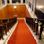 Vor der Tür gibt es andere beachtenswerte Kleinigkeiten – z.B. Zigarrenhalter. Unterbrach man seine Anwesenheit zu einem Rauchgang, konnte man schnell wieder zu den Verhandlungen im Nationalrat zurückkehren, seine Zigarre wartete in einem reservierten festen Platz. Zu Kaisers Zeiten muss es hier laut und oft unverständlich zugegangen sein, alle Nationen, ob Polen, Ukrainer, Tschechen, Ruthenen u.v.a.m. durften in ihrer Heimatsprache sprechen, erst im Protokoll wurde übersetzt. Manch berühmte Namen der nach 1918 neu gegründeten Staaten saßen schon hier. Masaryk, der Vater der Tschechoslowakei, wird extra mit einem Schild gewürdigt.